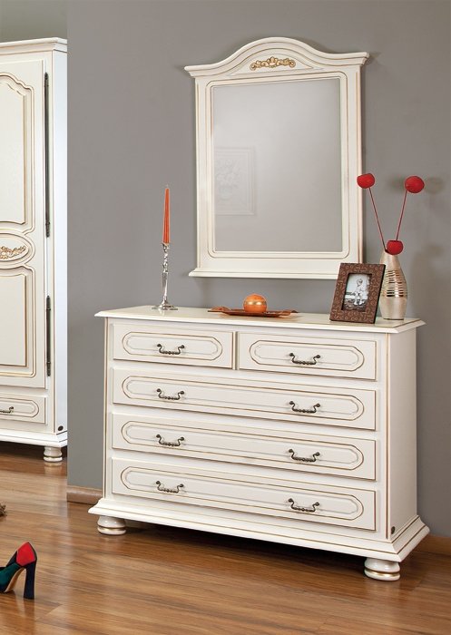 Finisaje realizate cu lacuri pe baza de apa. Variantele pe crem/alb au vopsea acrilo-poliuretanica si se fac in general la comanda. Mobila este disponibila in 3 variante de finisaj / culoare - stejar sau alb/crem - cu patina aurie sau argintie conturata mai puternic sau mai discret. Finisajele se pot vedea la poze.