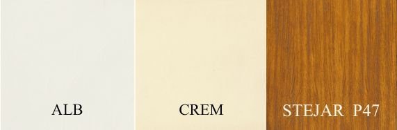 Partile laterale si pereti interiori sunt realizate din panouri furniruite cu furnir de stejar/nuc daca finisajul este vopsit alb sau crem si panouri melaminate in culoare stejar pentru finisajele pe stejar.